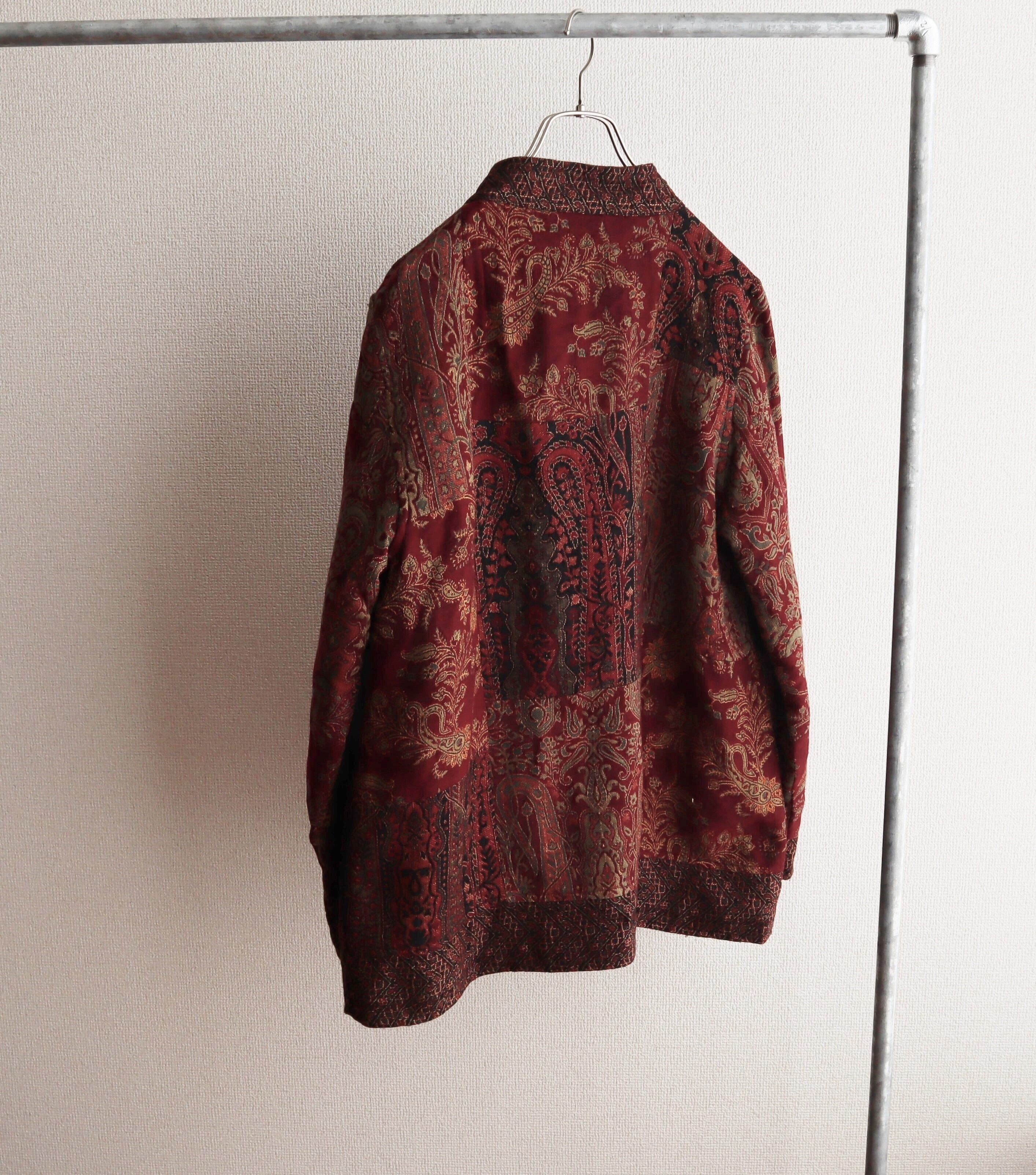 ジャガード織りのペイズリー柄のパッチワークが特徴的な、ホワイトスタッグを代表するチャイナジャケットになります。